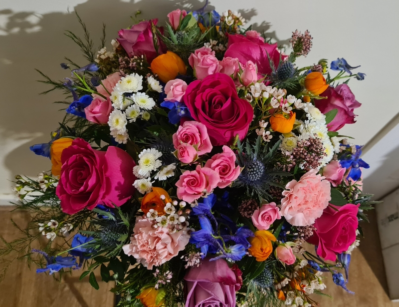 Please Note that due to the seasonal availability of flowers it may be necessary to vary individual stems from those shown. Our skilled florists may substitute flowers for one similar in style, quality and value. Where our designs include a sundry item such as a vase or basket it may not always be possible to include the exact item as displayed. If such an occasion arises we will make every effort to replace the item with a suitable alternative.